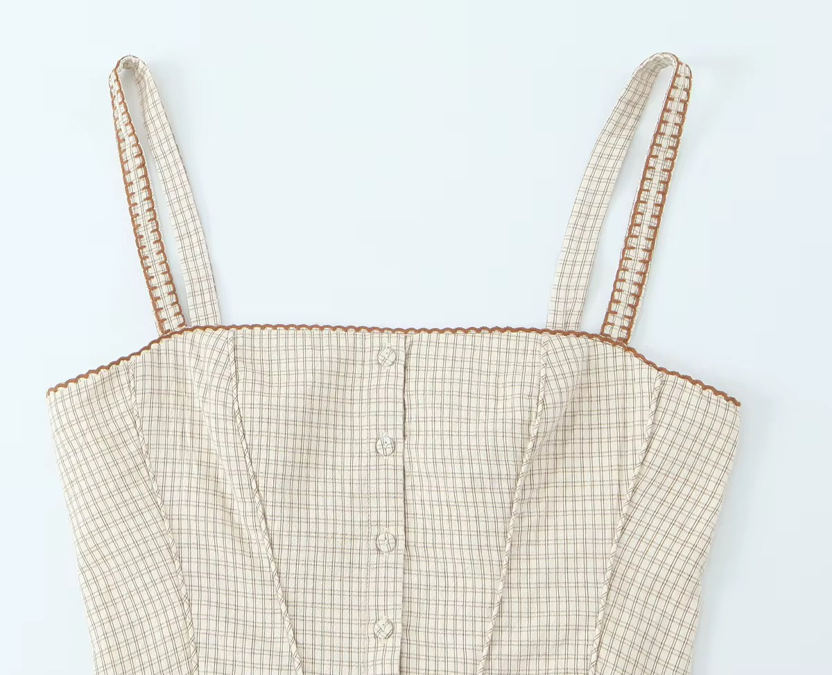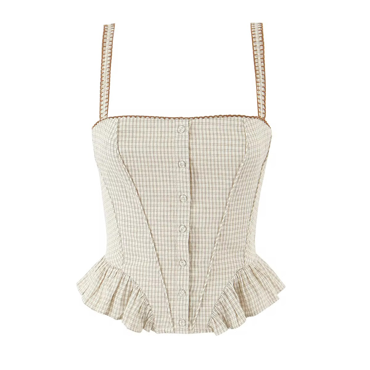 Meet the Dylan top—your new go-to for effortless style with a twist. This plaid strappy beauty features a charming button-down front and playful side flare detailing. The ruched elasticated reverse hugs you in all the right places while keeping things comfortable. Whether you're dressing it up or keeping it casual, this top brings personality and polish to any outfit. (See matching skirt)
